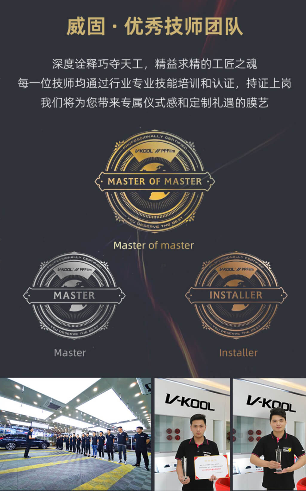 品牌源于专业,公司拥有业内优秀的汽车贴膜技师团队,以及从销售到施工、再到质保的管家式服务体系,我们的核心服务是通过专业严谨的施工,为广大车主提供优秀的汽车隔热膜安装服务,在汽车后市场树立优秀的品牌形象和人文风格。