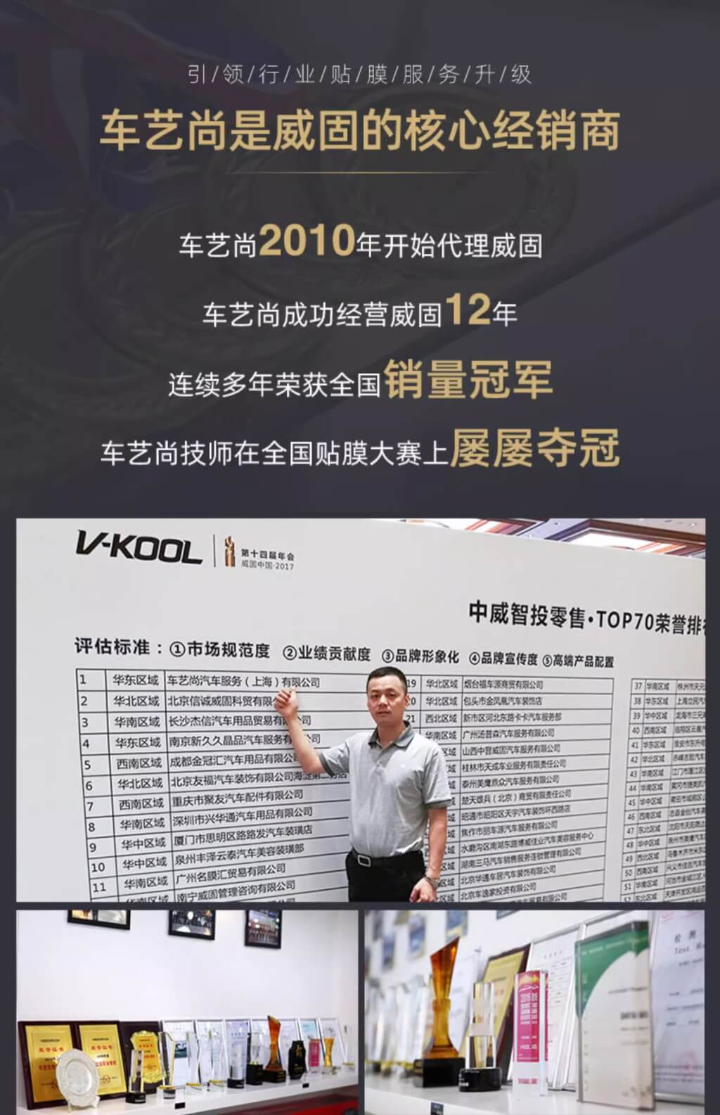 车艺尚二十一年来专注汽车贴膜艺术,秉承 “只贴膜、贴好膜” 的服务理念,已为超过十万台车主提供过高品质的贴膜服务。车艺尚旗下主营V-KOOL(威固)隔热膜、V-KOOL(威固)PPF隐形车衣、YEECAR(艺卡)隐形车衣、ROLIPS漆面保护膜,为客户带来 专业、正品、安全无风险 的贴膜体验。