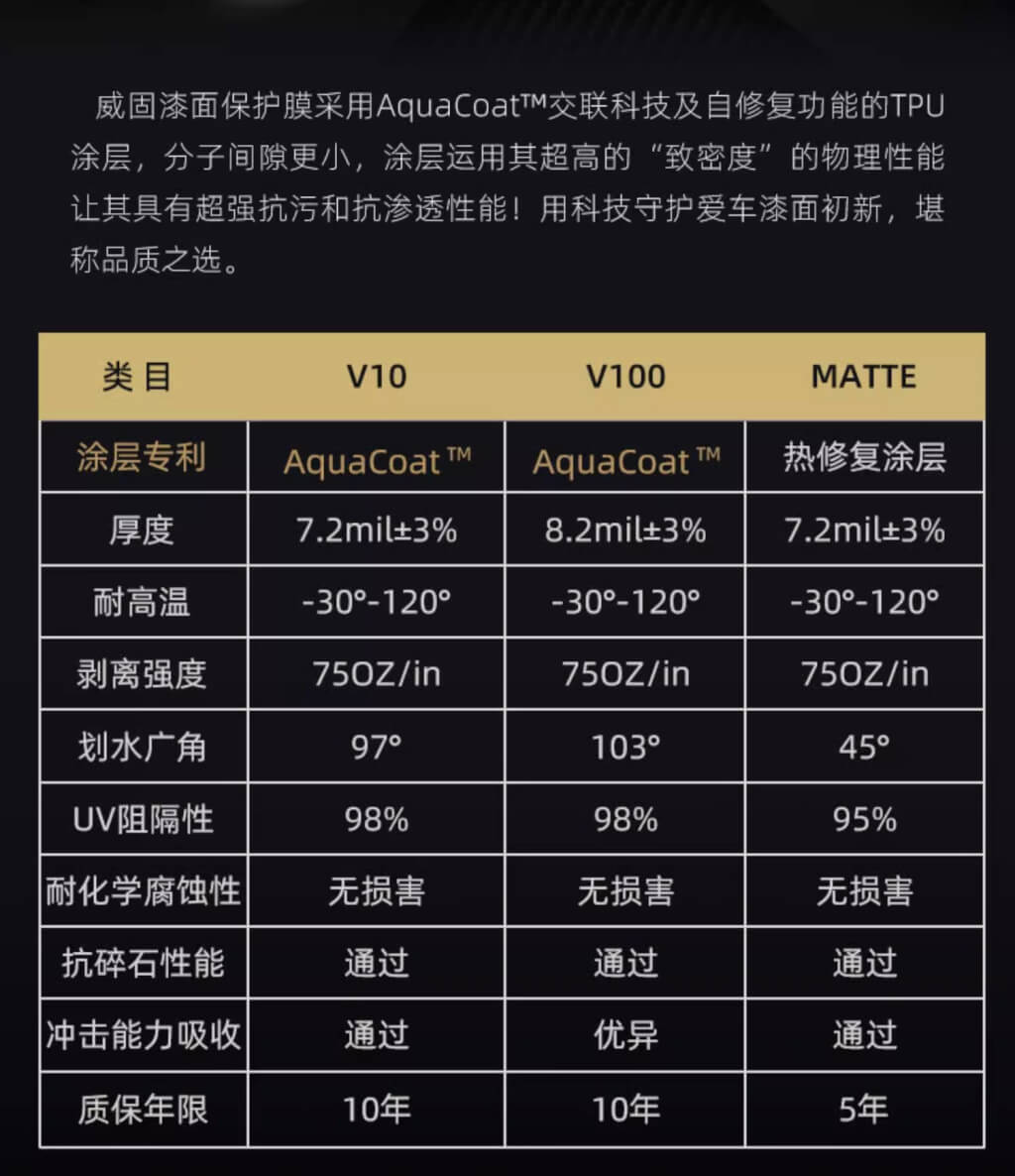 官方授权 电子质保 威固隐形车衣透明漆面保护膜V-3