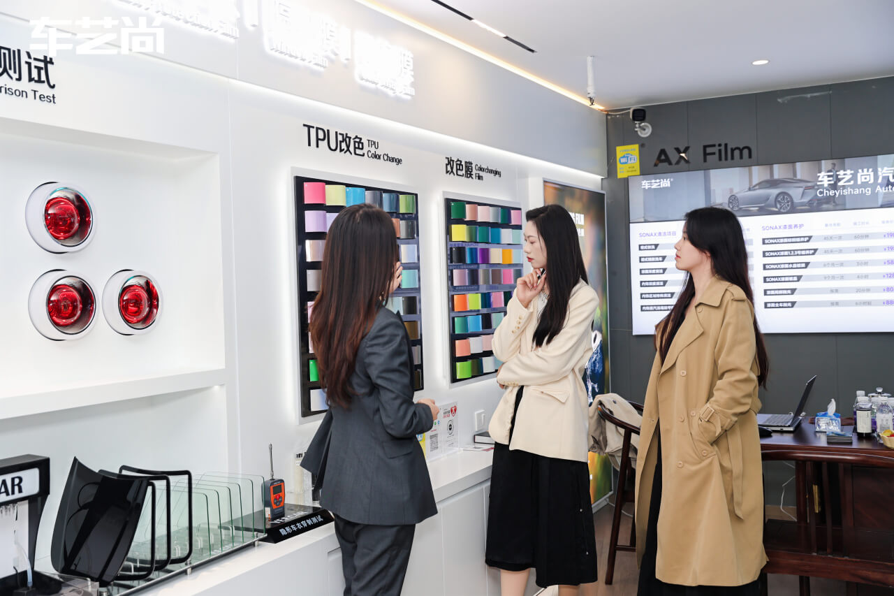 车艺尚已专业贴膜22年,一直秉承品质贴膜,坚持对贴出去的每一片车膜负责。全国100+连锁门店,不论走到哪里,都可以联系专属客服安排就近售后,在质保范围内的修膜补膜都免费。
