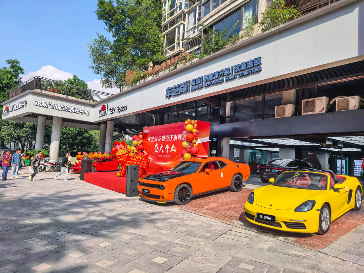 此次店面升级典礼,车艺尚重庆龙膜旗舰店的老朋友和新朋友,纷纷赶到活动现场。活动现场有精彩的舞狮表演、不限量供应的水果茶点、以及众多的福利惊喜。