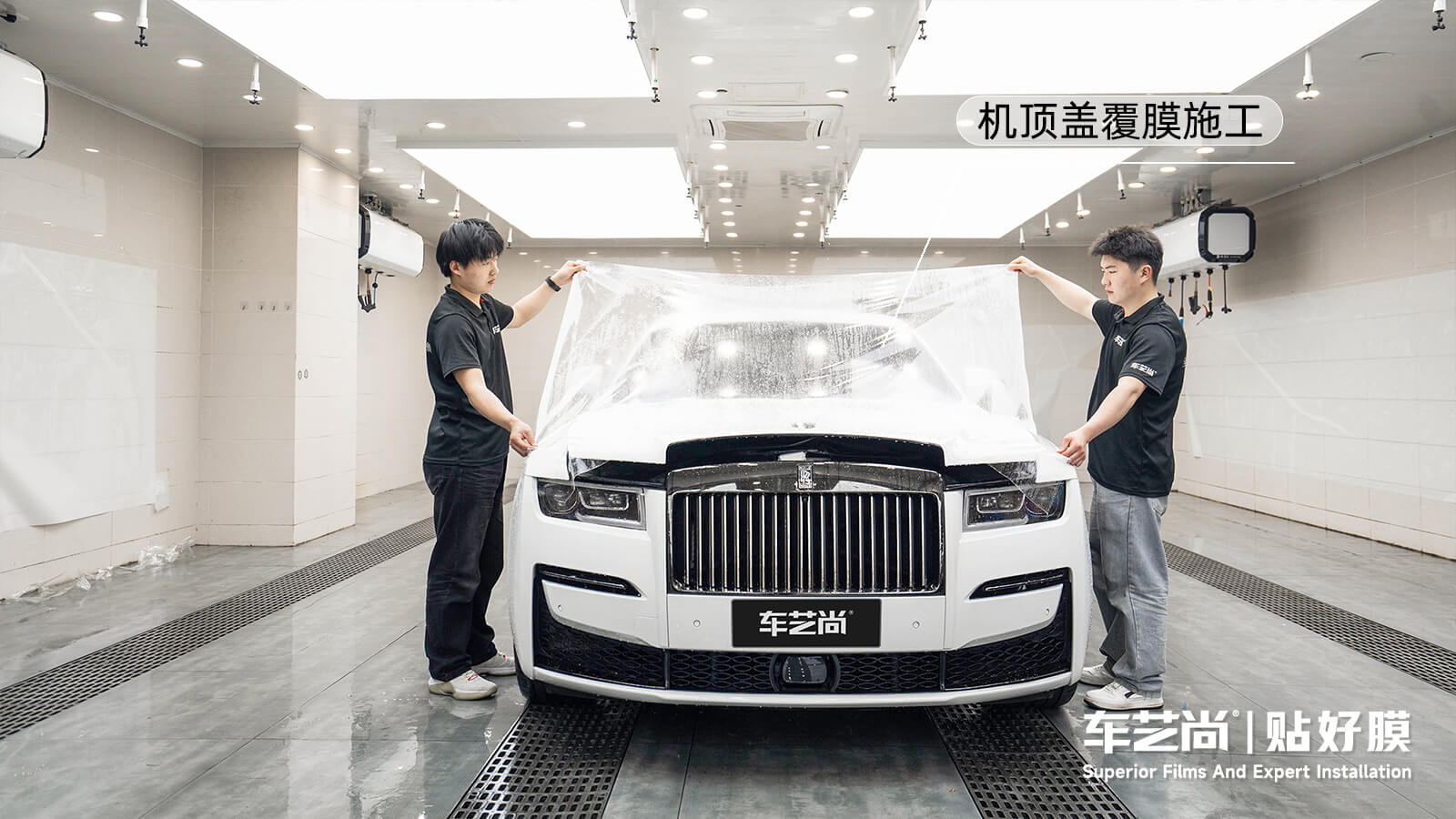 自主打造 “万级无尘车间 + 360° 无影光源 + 恒温恒湿系统”,配备 AI 智能裁膜机与喷淋除尘设施,施工环境标准达到龙膜全球臻选店要求,而车艺尚早在龙膜推出该等级体系前,已实现门店硬件标准化升级;