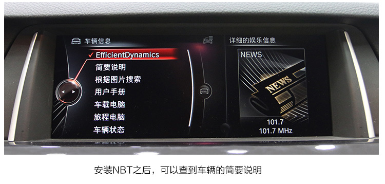 升级改装完NBT以后,主菜单上就多了一个互联驾驶菜单项,所以说只能在NBT硬件的基础上实现互联驾驶功能的激活使用!互联驾驶没被激活前,互联驾驶四个字显示的是灰色的!