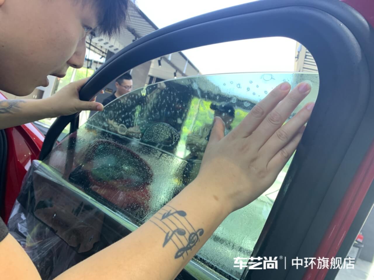 车艺尚技师微距施工技术,将膜贴到了玻璃边缘,几乎看不出贴膜痕迹,不影响整车美观度。