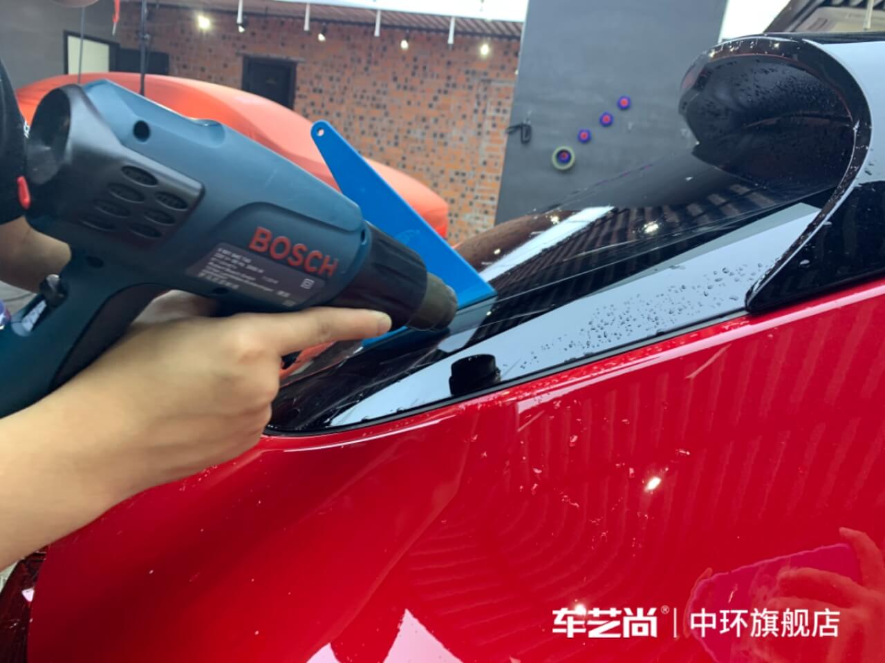 车艺尚技师不同施工部位采用不同的赶水手法与工具,确保膜与玻璃的充分贴合,无气泡、无翘边。