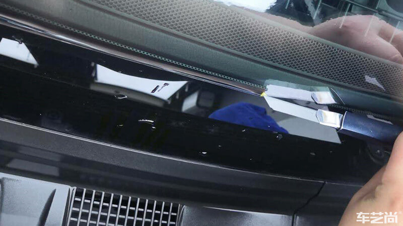 车艺尚技师不同施工部位采用不同的赶水手法与工具,确保膜与玻璃的充分贴合,无气泡、无翘边。
