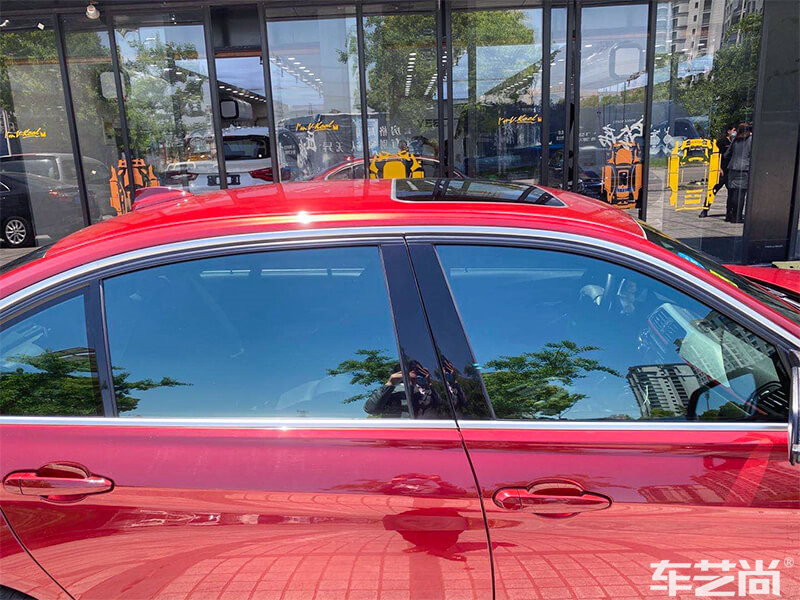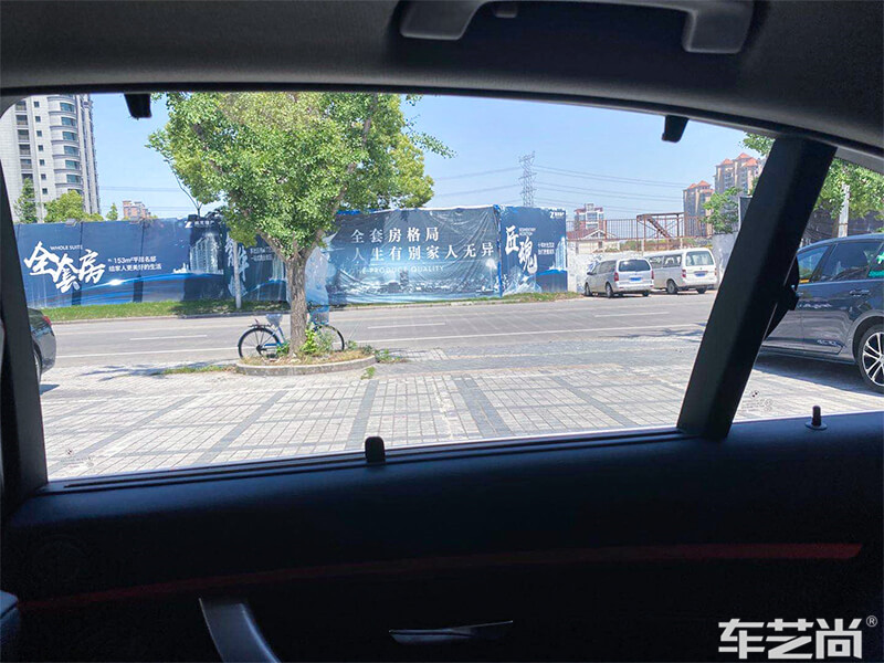 车艺尚技师微距施工技术,将膜贴到了玻璃边缘,几乎看不出贴膜痕迹,不影响整车美观度。