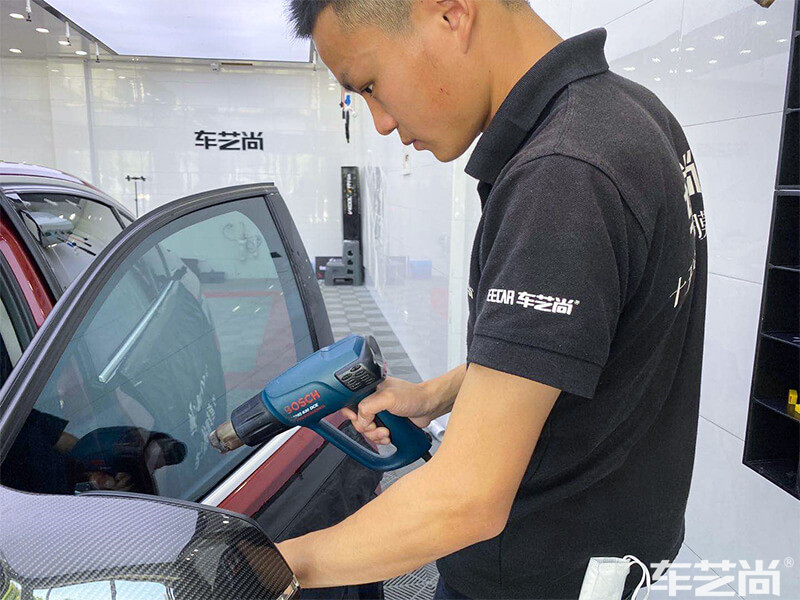 烘烤定型中,温度过高或过低都不行,这就既需要恒温的烤枪,又需要技师的手法,烘烤的距离、时长,都影响着膜的延展度。不专业的烘烤操作很容易烤伤车膜,甚至是爱车的玻璃。
