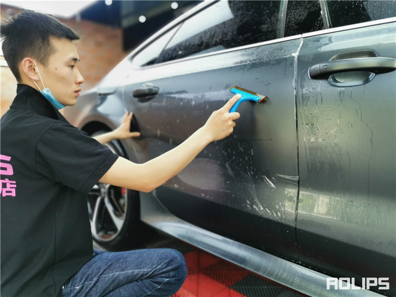 ROLIPS要求在隐形车衣施工前,对车辆进行彻底的清洁,不放过任何一个缝隙死角,保持漆面的洁净,确保贴膜后无尘点。