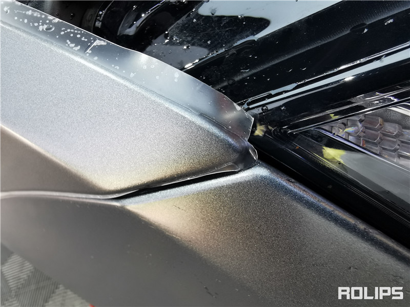 在车身边缘部位,ROLIPS技师匠心的收边工作,可以达到隐形装贴的效果,还能避免后期翘边脱落等问题的发生,延长车衣的使用寿命。