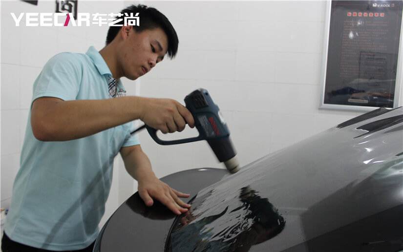 ● 烤膜是一项技术活,烤膜过程中必须使膜受热均匀(烤膜如果受热不均可能会使挡风玻璃炸裂,所以只有专业的熟练技师才能完美施工)