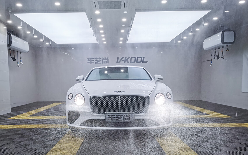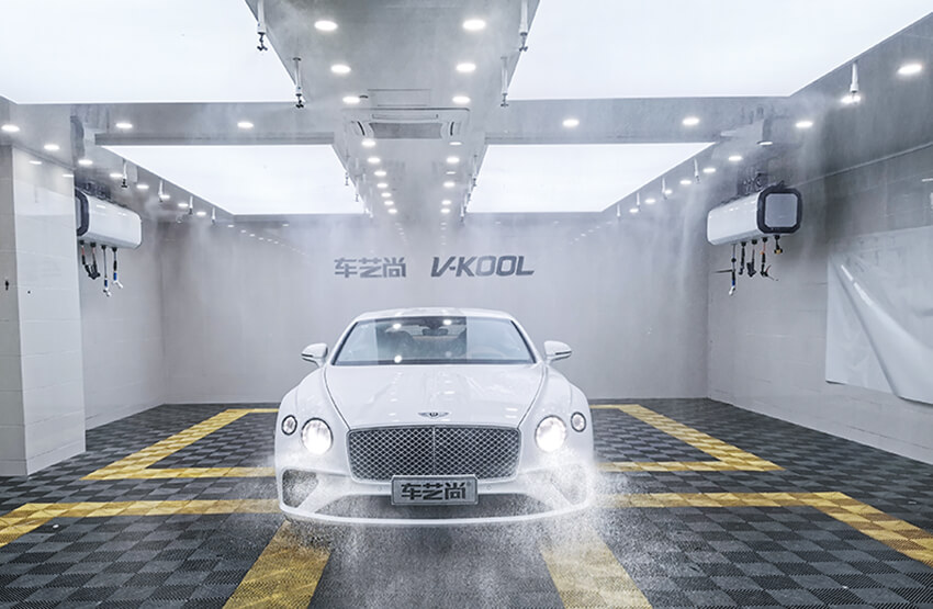 车艺尚威固官方授权店配备大型喷淋除尘系统,施工前雾化空气,模拟雨天的空气湿度,可以达到理想的贴膜环境。