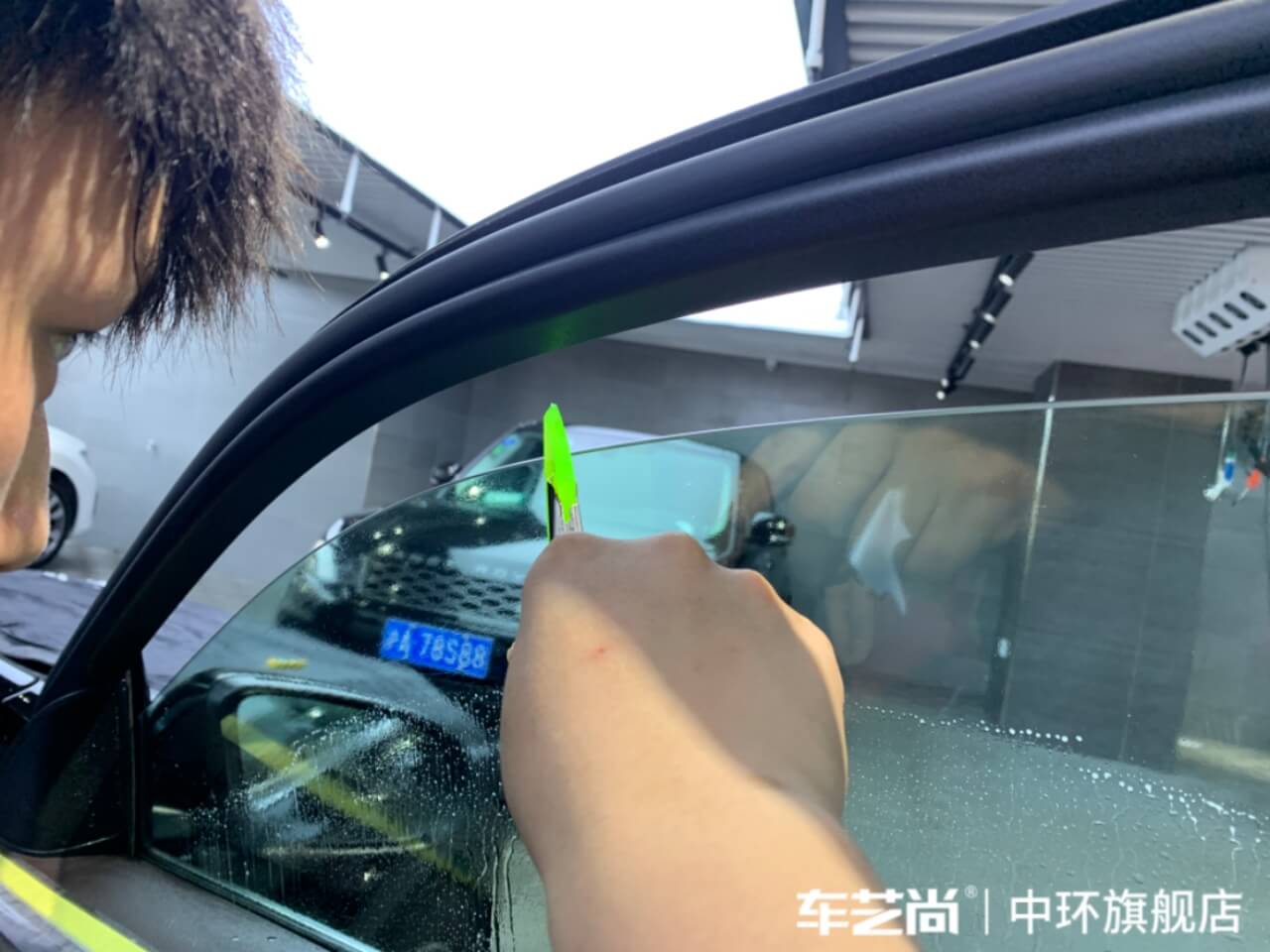 车艺尚技师微距施工技术,将膜贴到了玻璃边缘,几乎看不出贴膜痕迹,不影响整车美观度。
