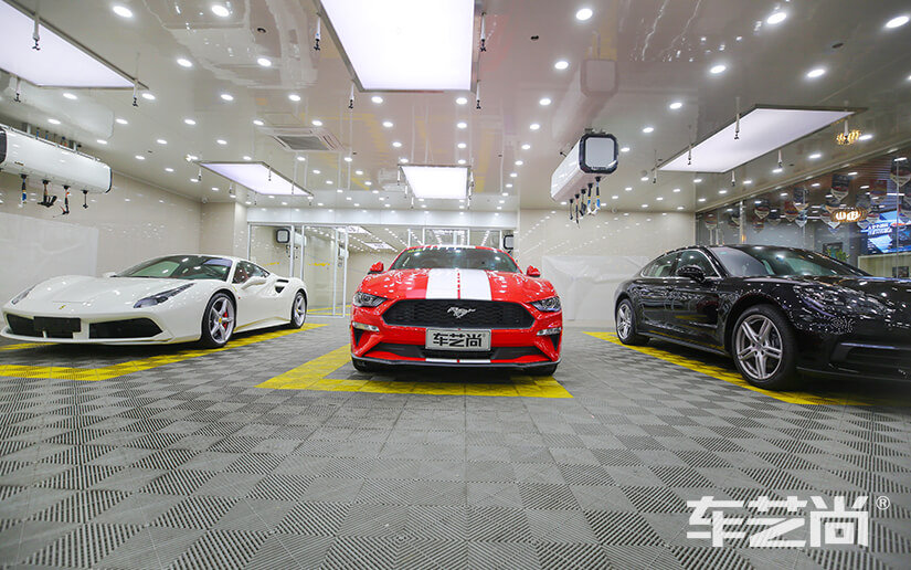 车艺尚拥有封闭的无尘施工间,配备无尘喷淋系统、媲美医用的LED照明设备、空调、加湿器、纯净水、过滤系统等,确保洁净的施工环境。