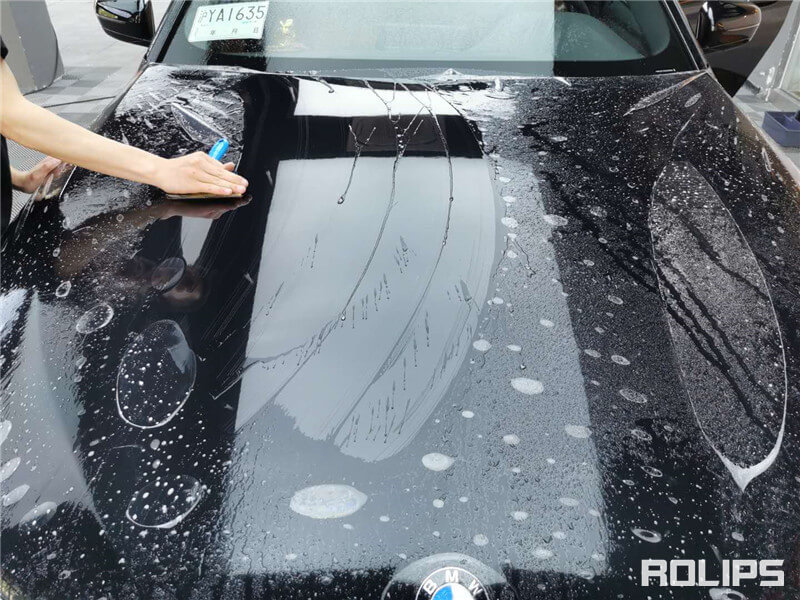 ROLIPS要求在隐形车衣施工前,对车辆进行彻底的清洁,不放过任何一个缝隙死角,保持漆面的洁净,确保贴膜后无尘点。