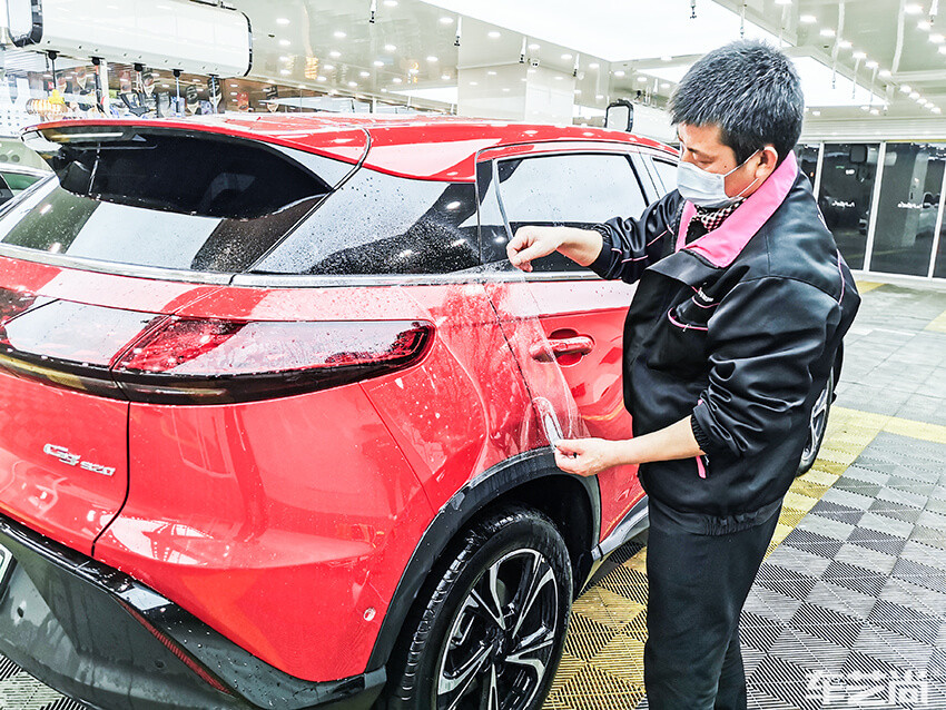 膜只是一种原材料,  没有贴到车身之前叫做半成品,需要拥有丰富经验的施工师傅,贴膜技术至关重要,优秀的施工工艺才能保证以后在使用过程中不起泡,不翘边。不出现水波纹