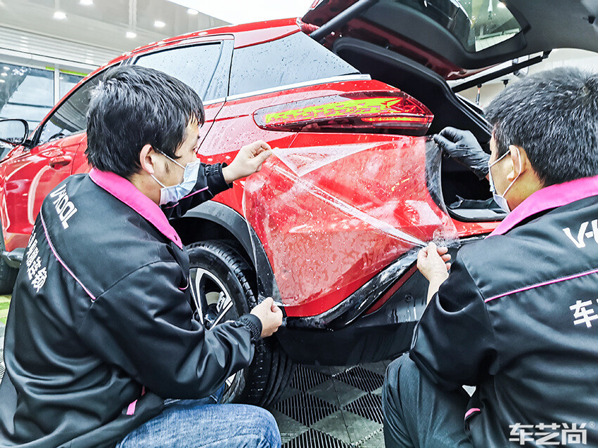 车艺尚隐形车衣贴膜采用超10万原厂车辆数据,电脑裁剪系统,实时更新主流车型数据,不动刀,不拆件,无划痕专业贴膜施工。确保每个面精准服帖,不翘边、不脱落。