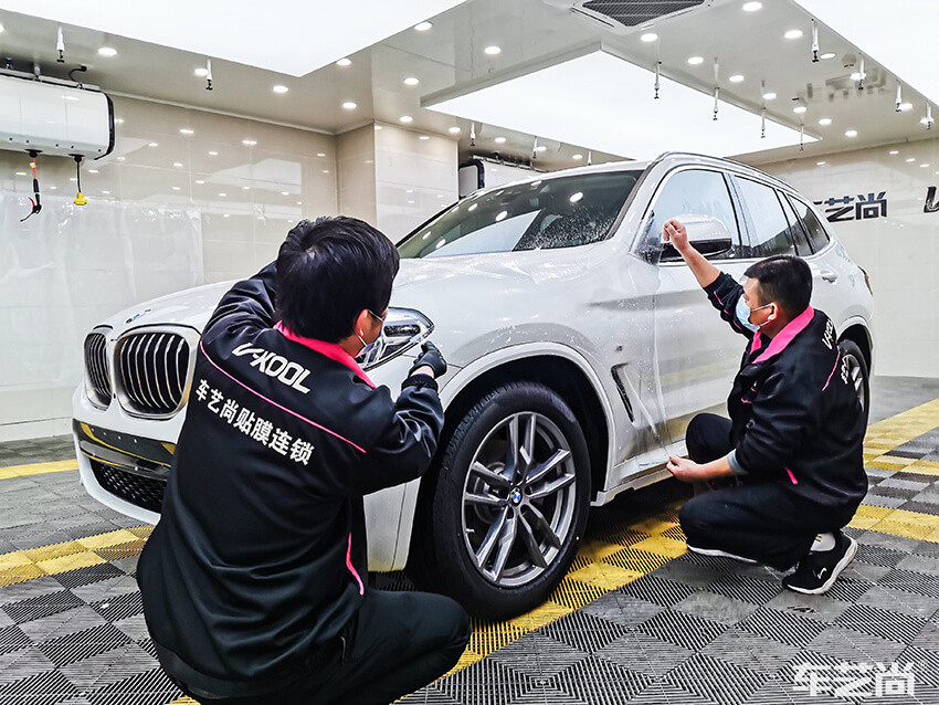 膜只是一种原材料, 没有贴到车身之前叫做半成品,需要拥有丰富经验的施工师傅,贴膜技术至关重要,优秀的施工工艺才能保证以后在使用过程中不起泡,不翘边。不出现水波纹