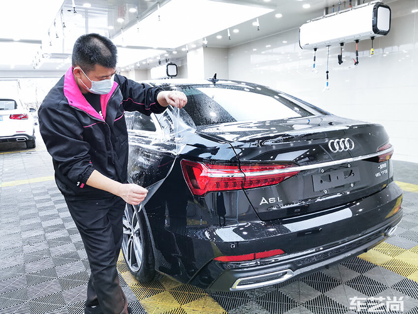 车艺尚拥有更精准的包边预留设计,电脑裁剪,匹配车身的每一个弧度,隐形车衣装贴过程中,不拆装不动刀无划痕。专车专用贴膜还可以避免施工中对膜的拉伸,确保隐形车衣的最佳出厂状态,最大限度的保护和发挥膜的性能。