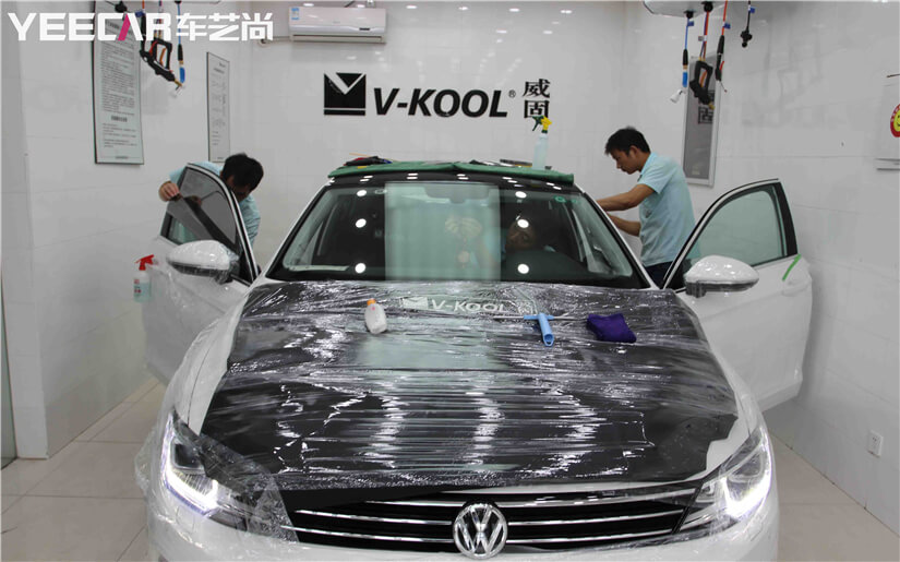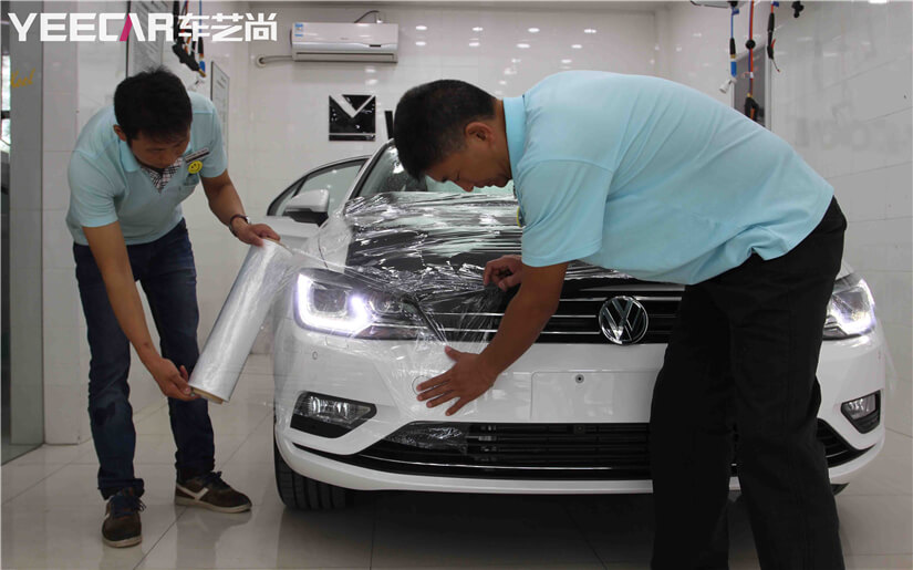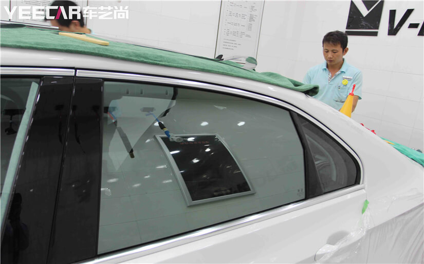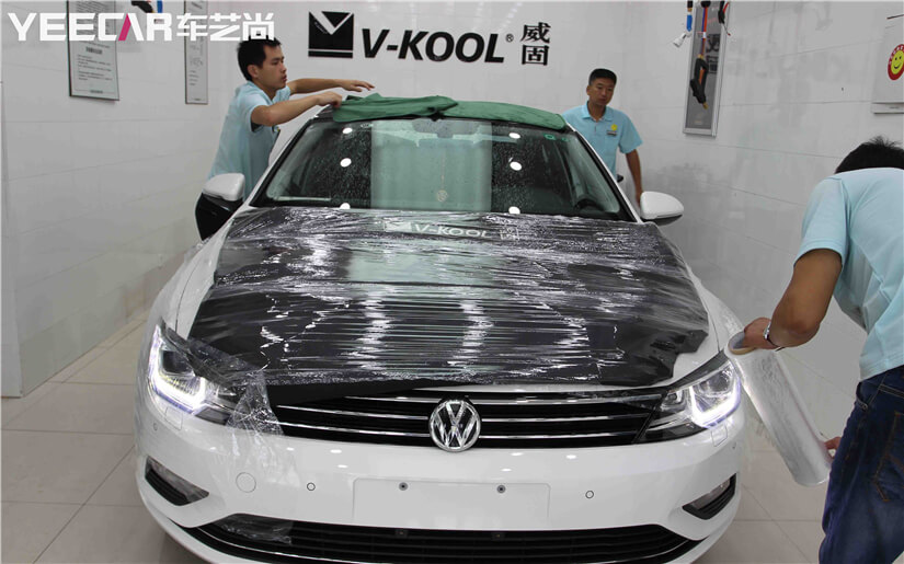 ● 车顶贴膜前保护,引擎盖和车身车漆等也不能忘