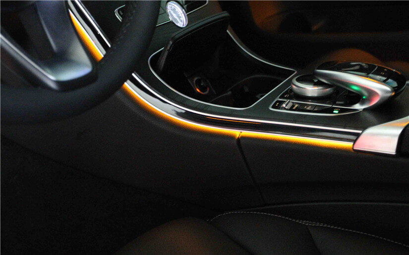 车内氛围灯是一种起到装饰作用的照明灯,通常是橙色、蓝色等,主要为了使车厢在夜晚时更加绚丽,烘托气氛,营造室内情调。