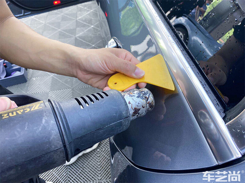 在车身边缘部位,车艺尚技师匠心的收边工作,可以达到隐形装贴的效果,还能避免后期翘边脱落等问题的发生,延长车衣的使用寿命。