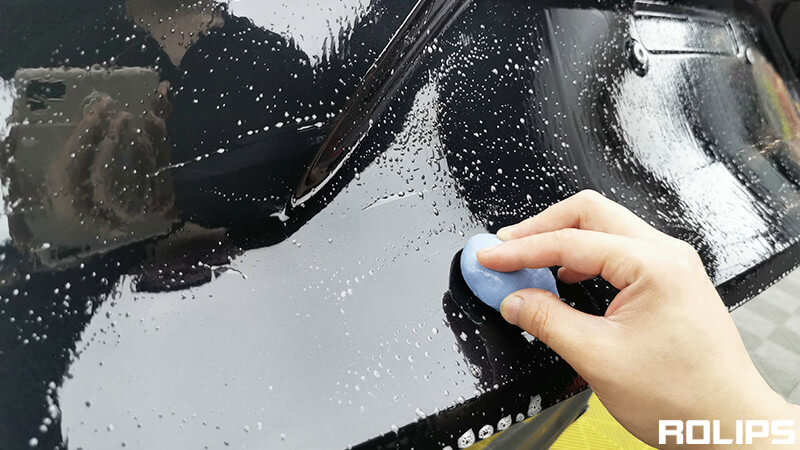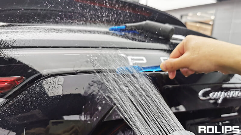 ROLIPS要求在隐形车衣施工前,对车辆进行彻底的清洁,不放过任何一个缝隙死角,保持漆面的洁净,确保贴膜后无尘点。