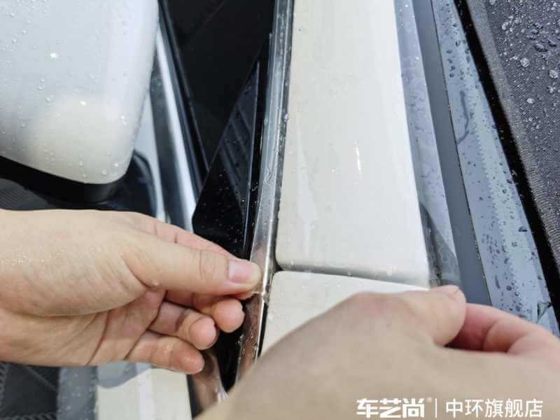在车身边缘部位,车艺尚技师匠心的收边工作,可以达到隐形装贴的效果,还能避免后期翘边脱落等问题的发生,延长车衣的使用寿命。
