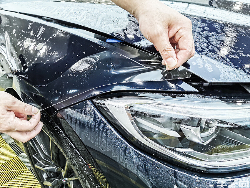 车艺尚拥有更精准的包边预留设计,电脑裁剪,匹配车身的每一个弧度,隐形车衣装贴过程中,不拆装不动刀无划痕。