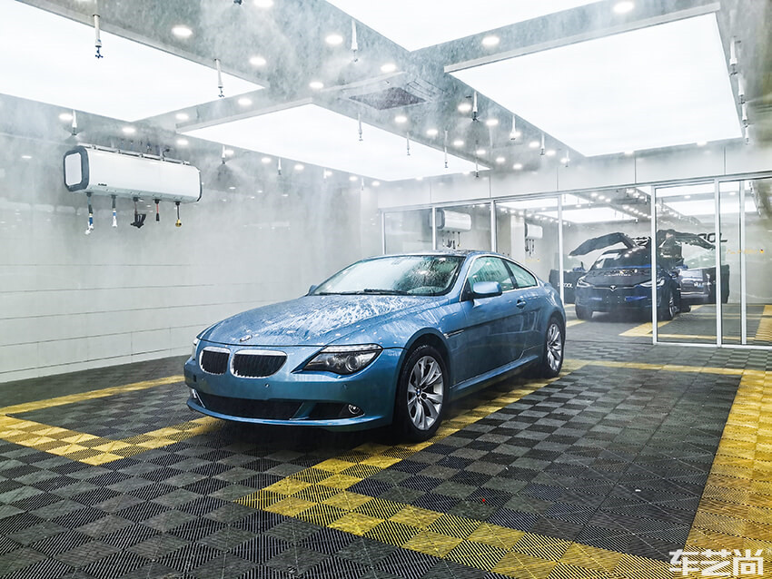 汽车贴膜前需要最大限度的确保空气和车身的洁净无尘,避免贴膜后有灰尘杂质夹杂其中。车艺尚配备大型喷淋除尘系统,施工前雾化空气,模拟雨天的空气湿度,可以达到理想的贴膜环境。
