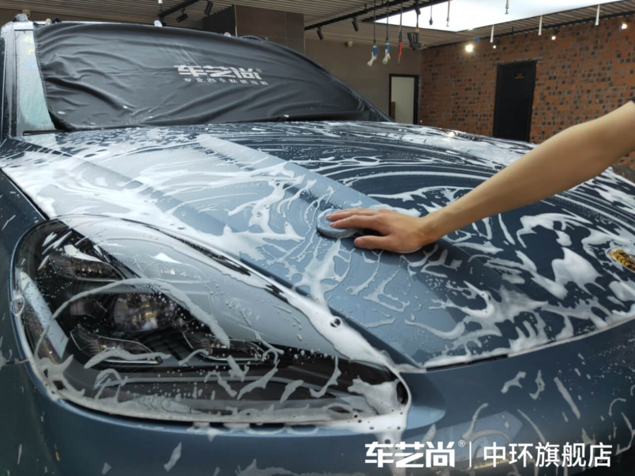 车艺尚汽车贴膜隐形车衣施工前,会对车辆进行彻底的清洁,不放过任何一个缝隙死角,保持漆面的洁净,确保贴膜后无尘点。