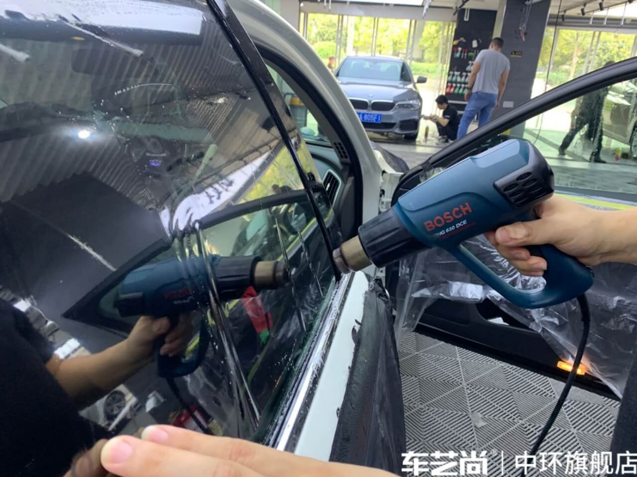 车艺尚技师微距施工技术,将膜贴到了玻璃边缘,几乎看不出贴膜痕迹,不影响整车美观度。