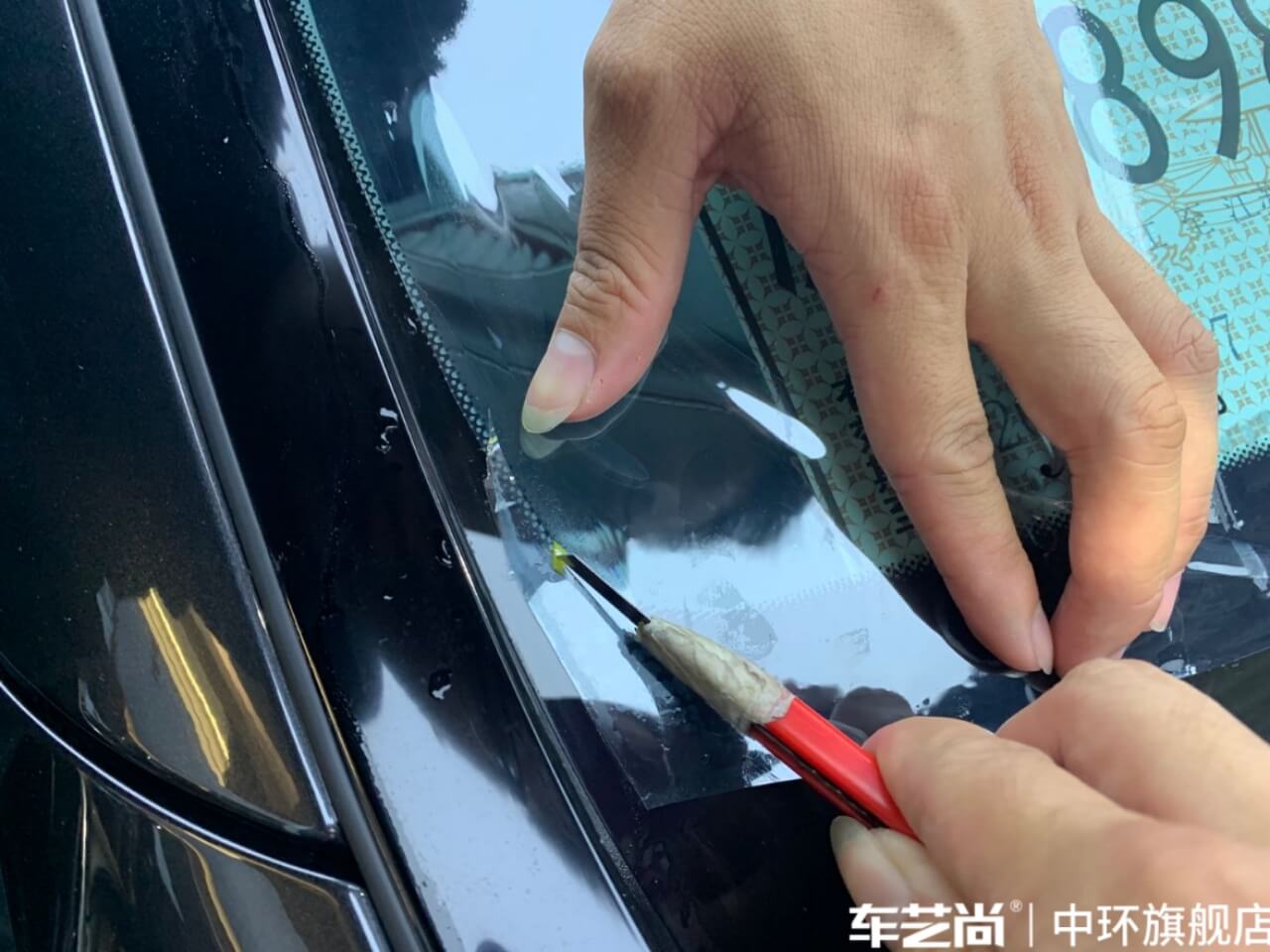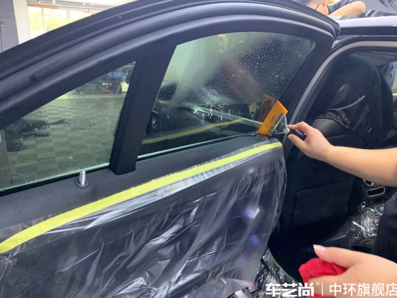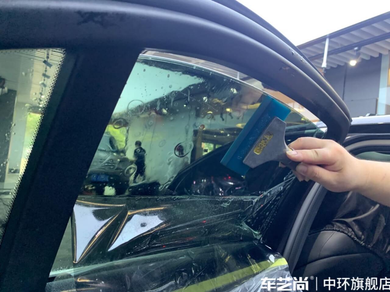 车艺尚技师不同施工部位采用不同的赶水手法与工具,确保膜与玻璃的充分贴合,无气泡、无翘边。