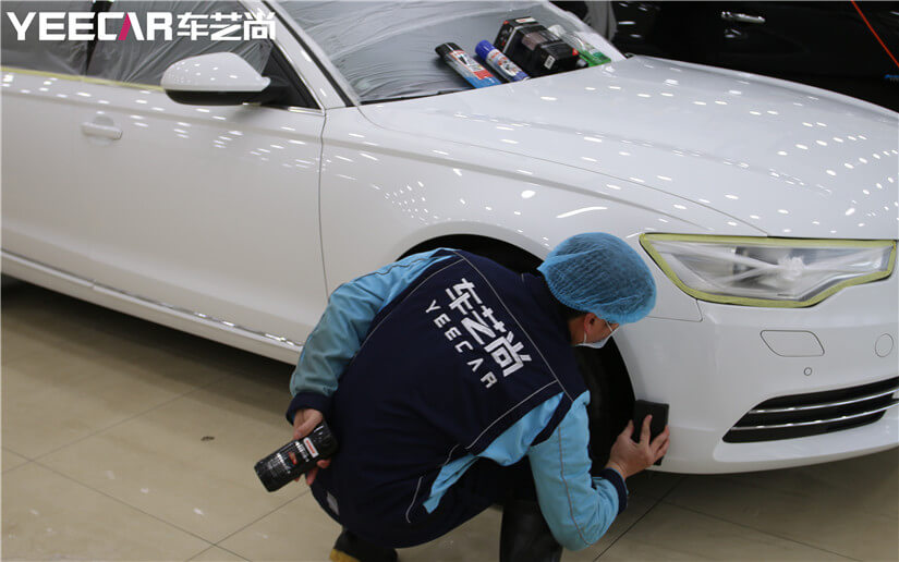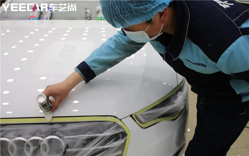 正式镀晶前要先处理车漆上的氧化点和小划痕,就算是新车,在运输途中以及停放时也不能避免
