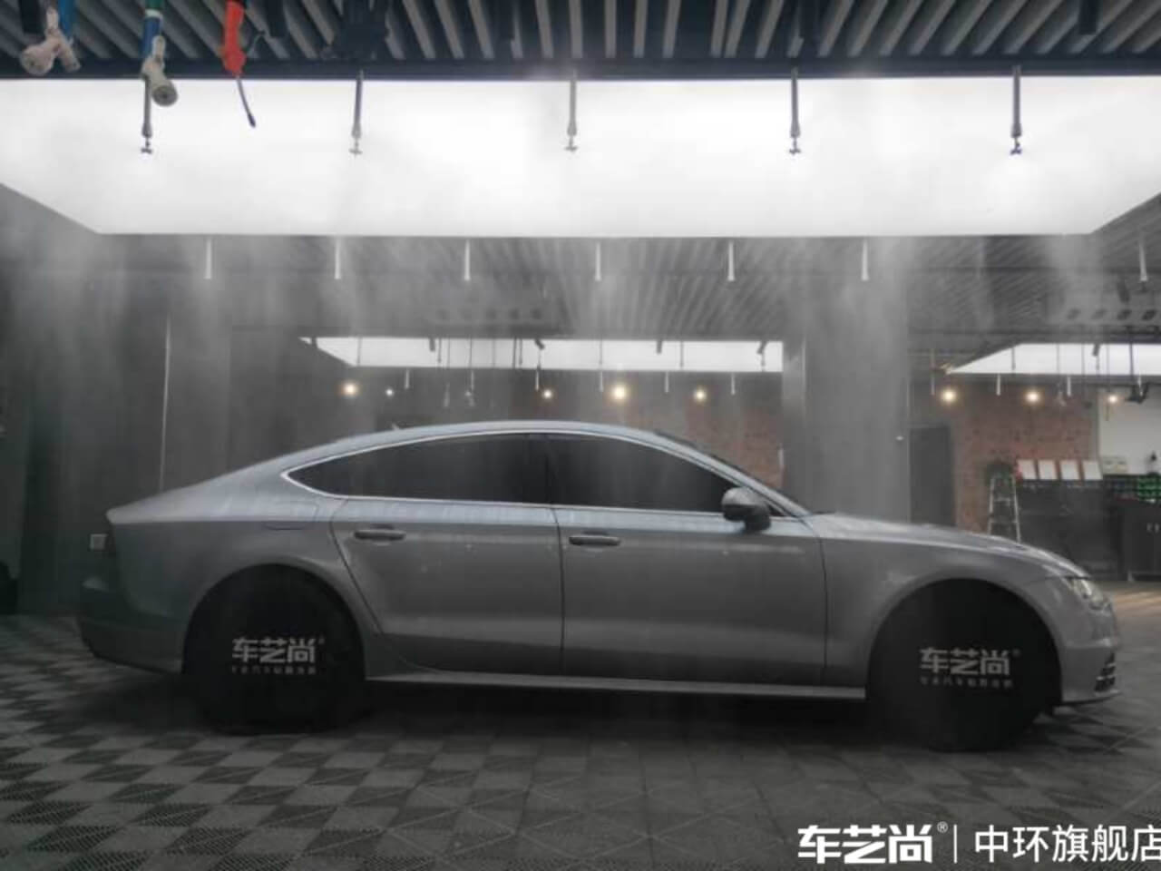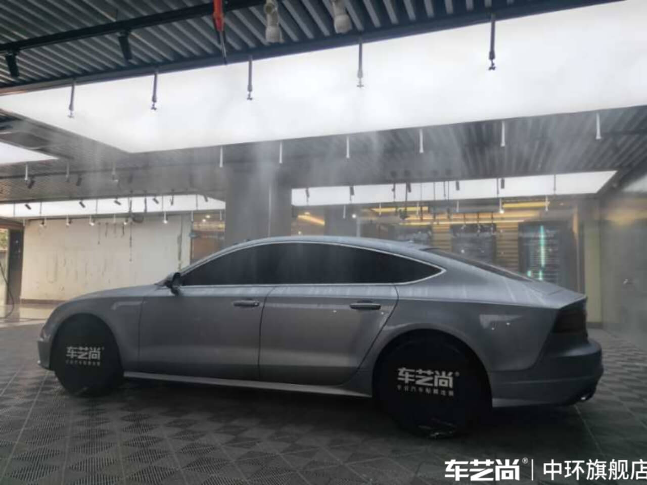 汽车贴膜前需要最大限度的确保空气和车身的洁净无尘,避免贴膜后有灰尘杂质夹杂其中。车艺尚配备大型喷淋除尘系统,施工前雾化空气,模拟雨天的空气湿度,可以达到理想的贴膜环境。