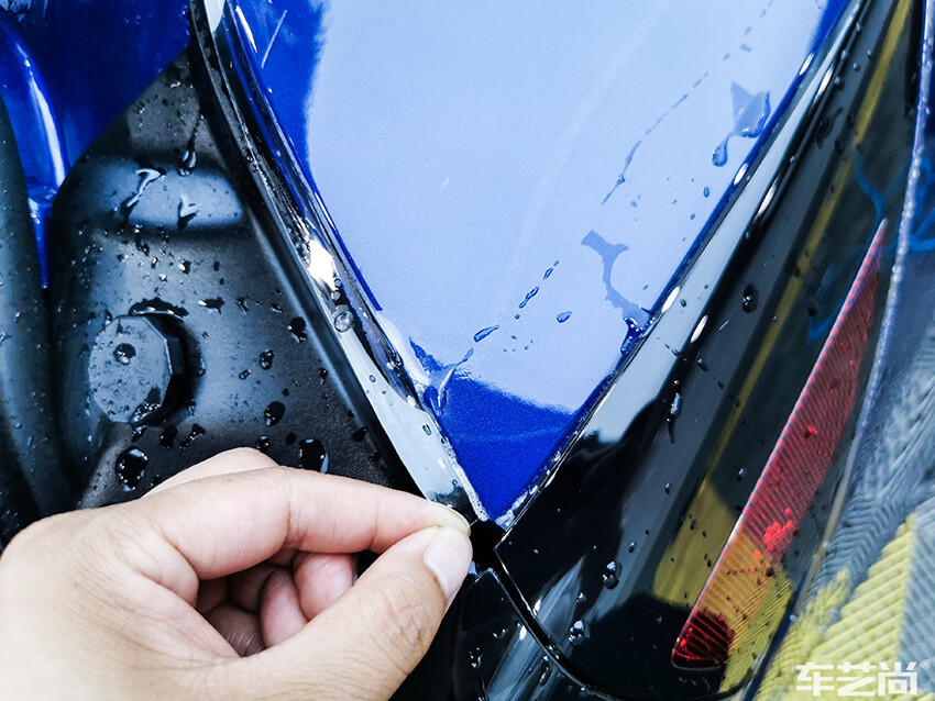 在车身边缘部位,车艺尚技师匠心的收边工作,可以达到隐形装贴的效果,还能避免后期翘边脱落等问题的发生,延长车衣的使用寿命。