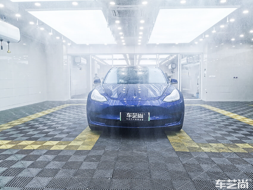 汽车贴膜前需要最大限度的确保空气和车身的洁净无尘,避免贴膜后有灰尘杂质夹杂其中。车艺尚配备大型喷淋除尘系统,施工前雾化空气,模拟雨天的空气湿度,可以达到理想的贴膜环境。