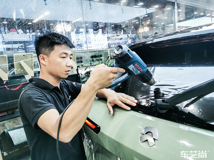 烘烤定型中,温度过高或过低都不行,这就既需要恒温的烤枪,又需要技师的手法,烘烤的距离、时长,都影响着膜的延展度。不专业的烘烤操作很容易烤伤车膜,甚至是爱车的玻璃。