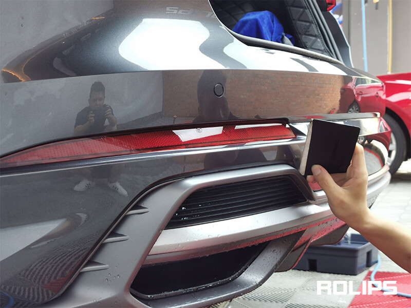 在车身边缘部位,ROLIPS技师匠心的收边工作,可以达到隐形装贴的效果,还能避免后期翘边脱落等问题的发生,延长车衣的使用寿命。