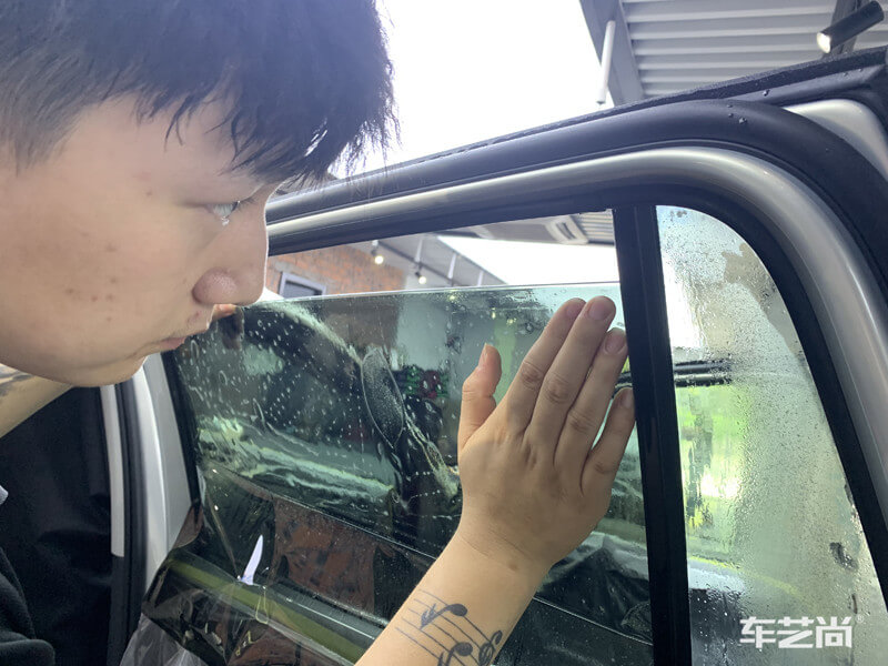 车艺尚技师微距施工技术,将膜贴到了玻璃边缘,几乎看不出贴膜痕迹,不影响整车美观度。