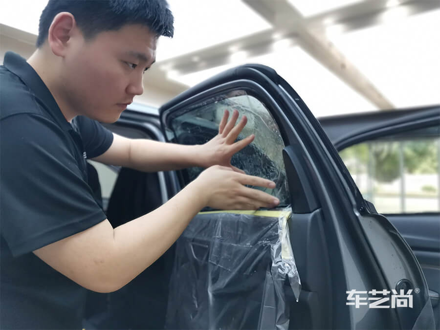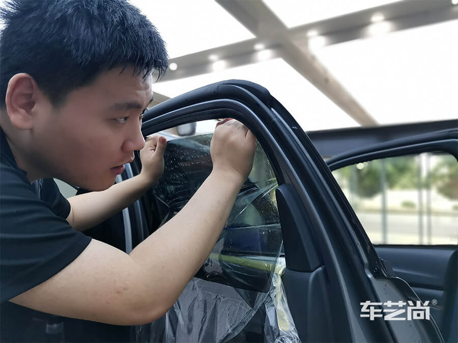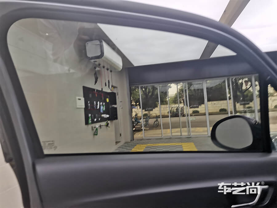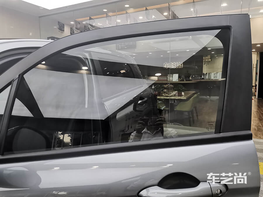 车艺尚技师微距施工技术,将膜贴到了玻璃边缘,几乎看不出贴膜痕迹,不影响整车美观度。