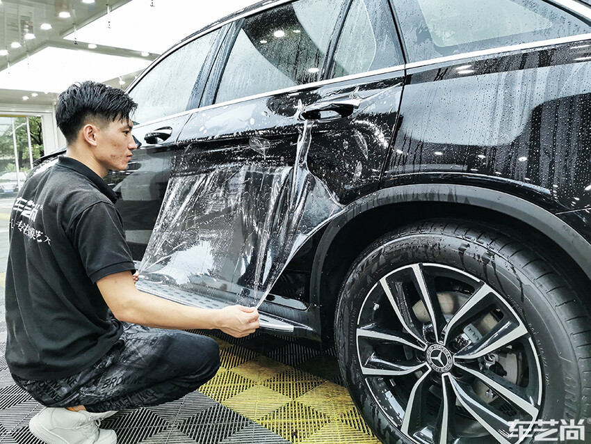 车艺尚拥有更精准的包边预留设计,电脑裁剪,匹配车身的每一个弧度,隐形车衣装贴过程中,不拆装不动刀无划痕。