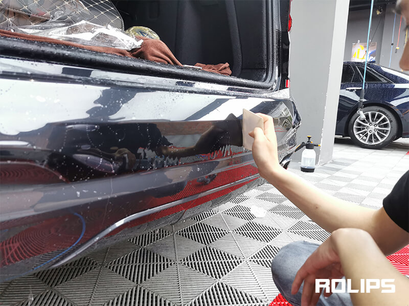 ROLIPS要求在隐形车衣施工前,对车辆进行彻底的清洁,不放过任何一个缝隙死角,保持漆面的洁净,确保贴膜后无尘点。