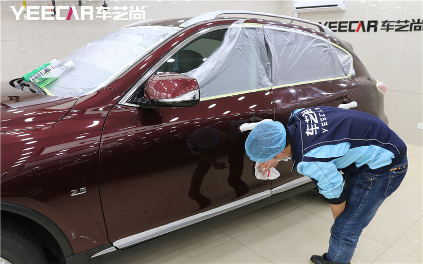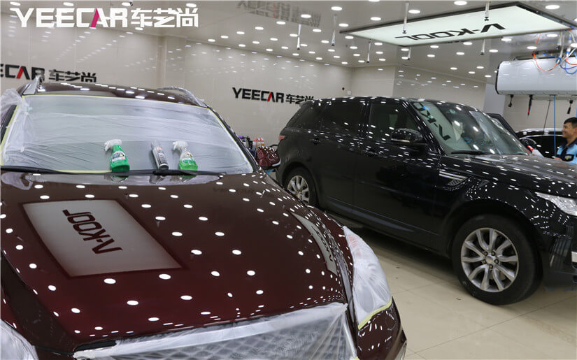 车艺尚拥有业内专业的无尘喷淋施工间,配备大型喷淋喷雾系统、加湿器、空调等专业设施可以达到理想的贴膜环境,是真正的无尘贴膜。