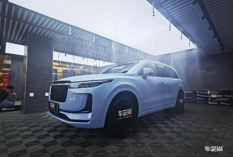 汽车贴膜前需要最大限度的确保空气和车身的洁净无尘,避免贴膜后有灰尘杂质夹杂其中。车艺尚配备大型喷淋除尘系统,施工前雾化空气,模拟雨天的空气湿度,可以达到理想的贴膜环境。