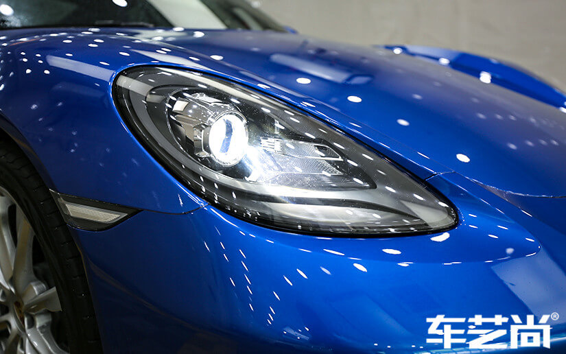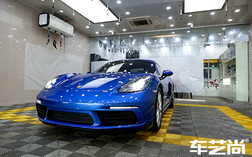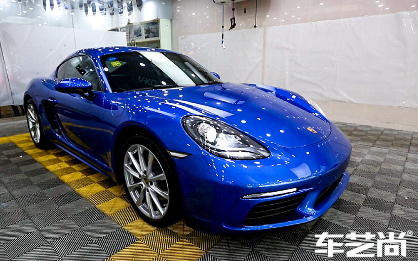 宝石蓝保时捷718汽车贴膜施工威固隐形车衣