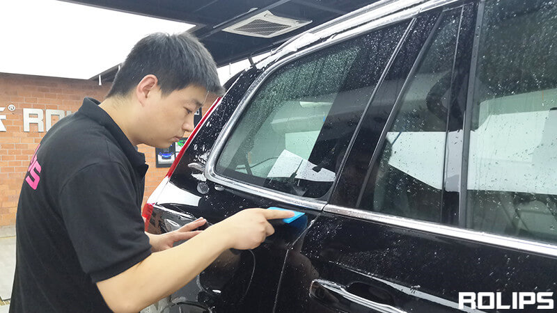 ROLIPS要求在隐形车衣施工前,对车辆进行彻底的清洁,不放过任何一个缝隙死角,保持漆面的洁净,确保贴膜后无尘点。