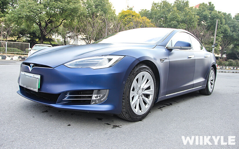 蓝色特斯拉MODEL S WIIKYLE隐形车衣贴膜案例