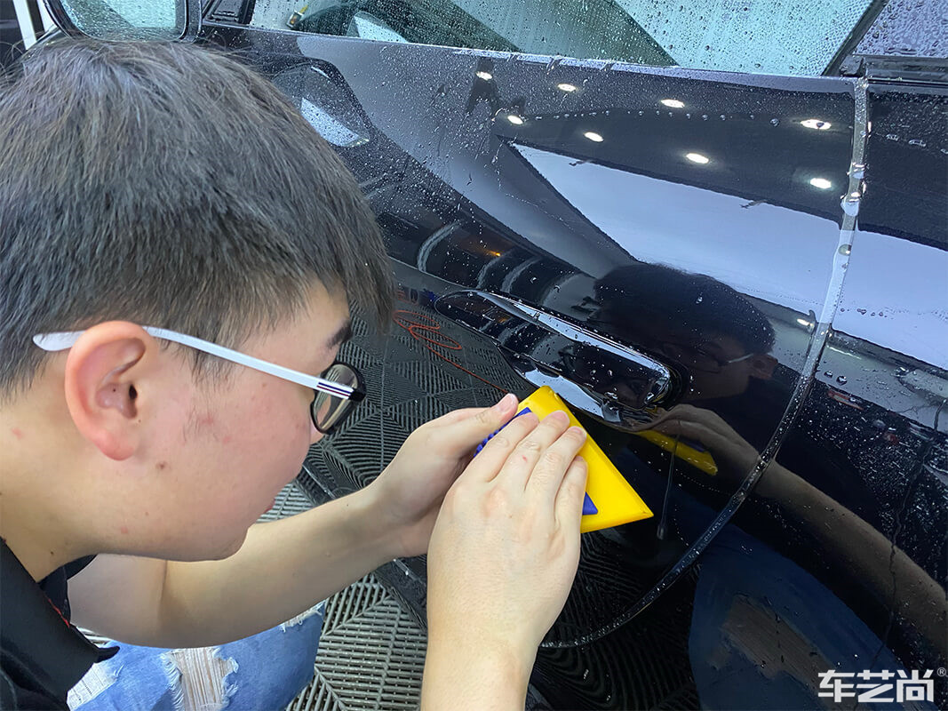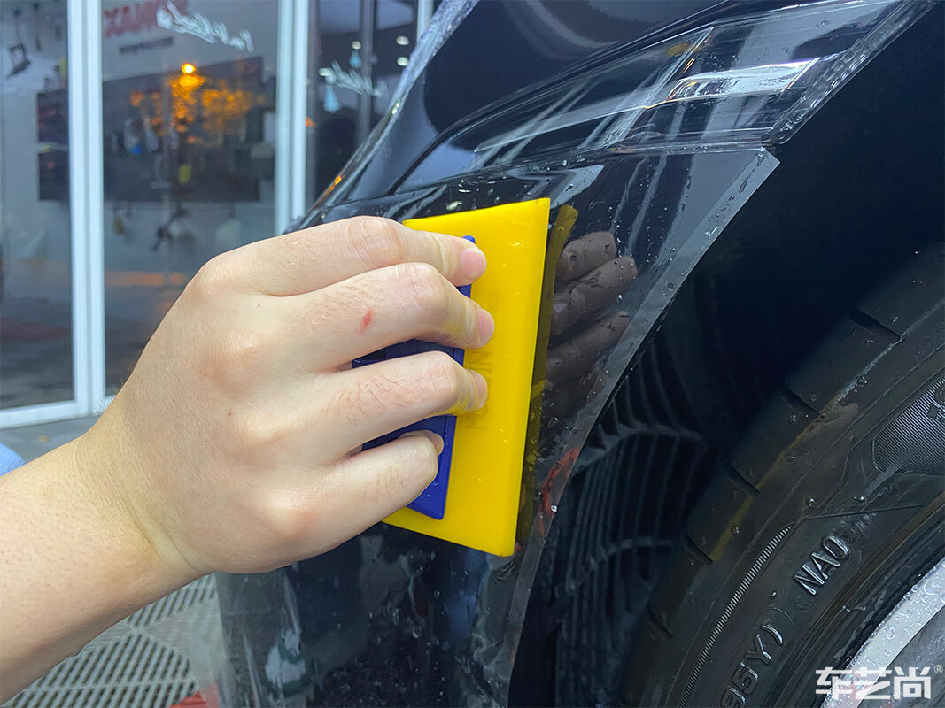 车艺尚拥有更精准的包边预留设计,电脑裁剪,匹配车身的每一个弧度,隐形车衣装贴过程中,不拆装不动刀无划痕。