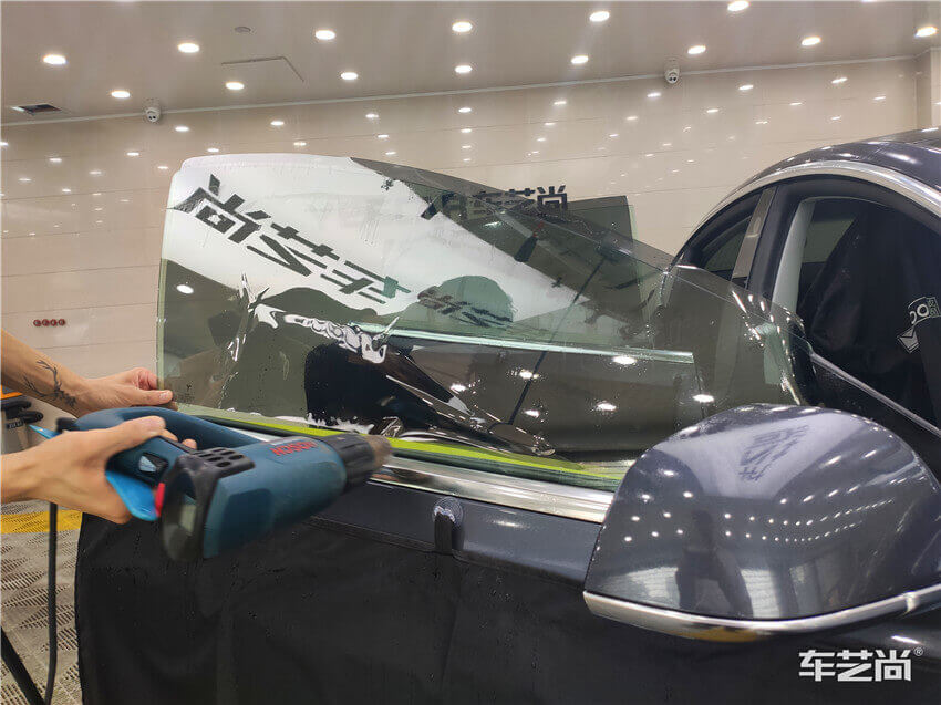 烘烤定型中,温度过高或过低都不行,这就既需要恒温的烤枪,又需要技师的手法,烘烤的距离、时长,都影响着膜的延展度。不专业的烘烤操作很容易烤伤车膜,甚至是爱车的玻璃。